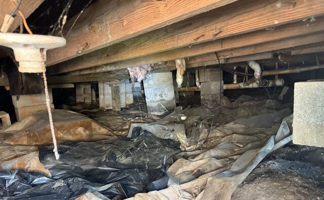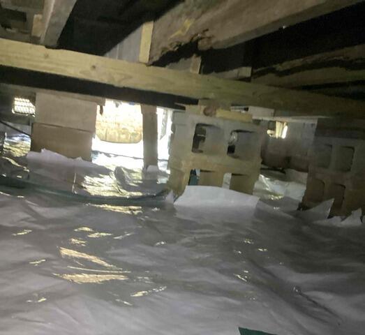 This formerly damp and sagging crawl space got a brand new look and feel after receiving our CleanSpace encapsulation system and SmartJack floor-stabilizing system. This home's floors were permanently and instantly stabilized and lifted back to original position. The crawl space is now healthy, protected, and dry for years to come.