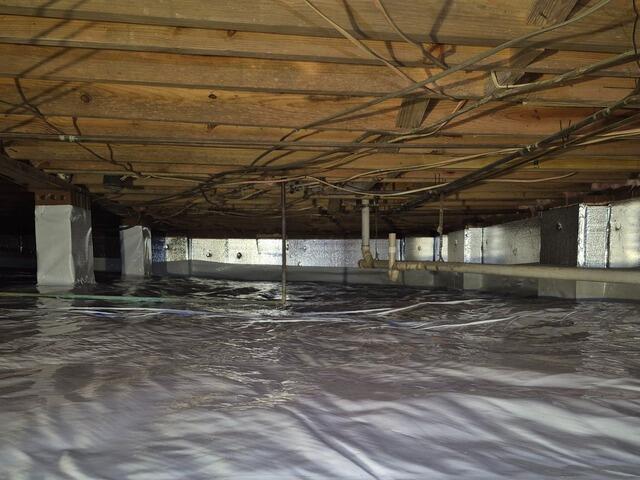 We began with a durable vapor barrier to encapsulate the crawl space floor, sealing out ground moisture and helping regulate humidity levels. A high-performance sump pump system was installed to actively remove any water entering the space, along with a battery backup system to ensure continued protection during power outages.