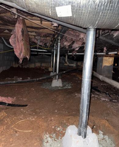 This Moncure, NC homeowner was experiencing sagging and uneven floors due to weakened crawl space support. Our team installed SmartJack support posts to provide permanent stabilization and lift to the floor system. The adjustable steel posts are engineered to support heavy loads and can be fine-tuned over time, helping restore structural integrity and improve overall home safety.