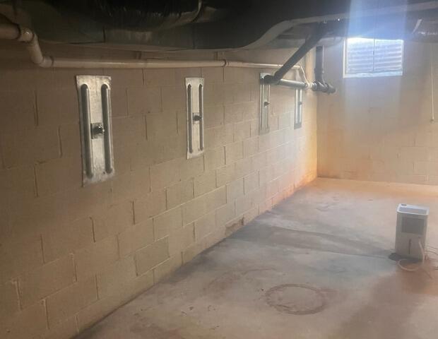In this Winston-Salem, NC home, the basement wall was showing signs of inward movement and bowing a common issue caused by soil pressure and moisture around the foundation. Our team installed GeoLock Wall Anchors, a permanent stabilization system engineered to stop further movement and help straighten the wall over time.