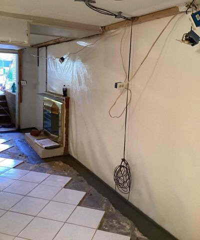 This Winston-Salem, NC basement was experiencing water intrusion along the walls and floor, causing moisture damage and tile deterioration. To permanently resolve the issue, our team installed an interior waterproofing system along the perimeter of the basement.