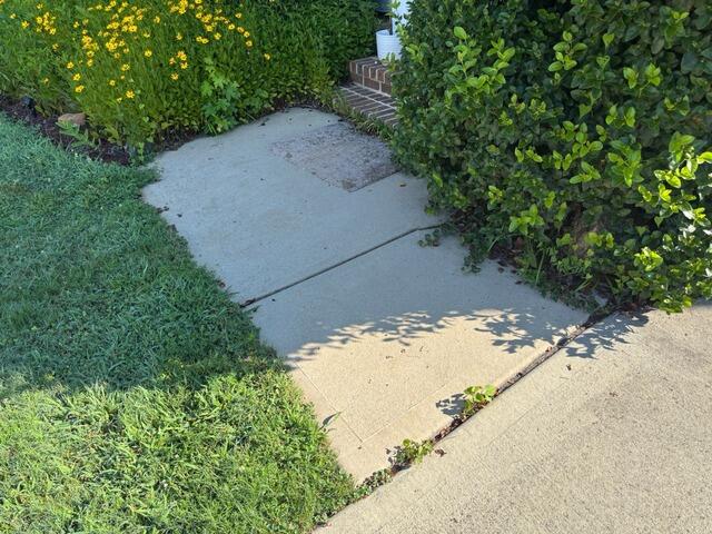 This Chapel Hill homeowner noticed their front walkway beginning to sink and pull away from the steps a common symptom of soil settlement and erosion beneath the concrete. The uneven surface not only created a tripping hazard but also took away from the home’s overall curb appeal.