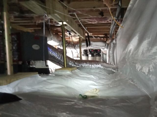Using our CleanSpace Vapor Barrier, we sealed this customers crawl space to prevent moisture from seeping through and to prevent mold growth.