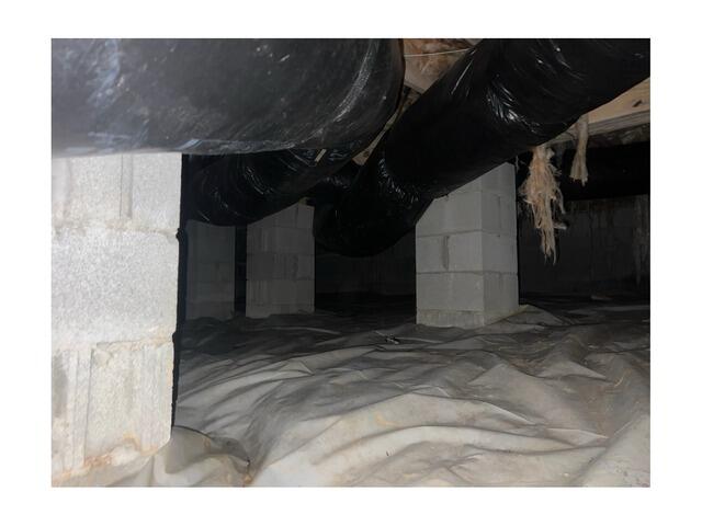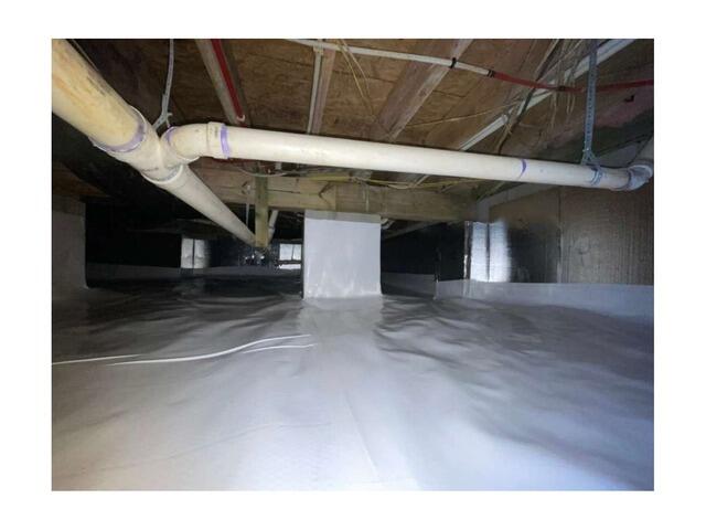 This formerly dirty and musty crawl space got a brand new look and feel with our CleanSpace crawl space encapsulation system! Our ultra-durable CleanSpace vapor barrier is used to seal, cover, and protect this crawl space from moisture, humidity, and drafts.