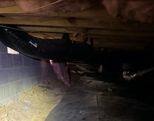 This Wake Forest, NC home was dealing with several crawl space issues commonly caused by excess moisture and poor air quality. The original crawl space conditions included exposed soil, deteriorating insulation, unsealed vents, and humid, damp air circulating around the home’s ductwork and structural framing. Over time, this can lead to mold growth, wood rot, musty odors, pest activity, and energy loss—all of which were visible concerns in the “before” photo.