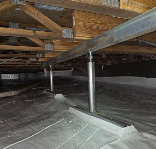 In this Raleigh, NC home, our team completed a full crawlspace transformation with SmartJack support posts, encapsulation, and SilverGlo insulation. The SmartJack system was installed to stabilize and lift sagging floors, providing strong, adjustable support to the floor system above. We then sealed the crawlspace with a durable vapor barrier to lock out moisture and reduce humidity. To enhance energy efficiency, SilverGlo insulation was installed along the walls, helping regulate temperature year-round. This combination creates a cleaner, healthier, and more structurally sound crawlspace for long-term protection.