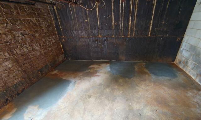 Water regularly flowed through the foundation walls in this basement. The wall started to bow and crack. We waterproofed the interior and stabilized the block walls with our patented PowerBraces.